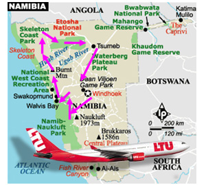 Linienflug mit LTU ab Deutschland 1. Tag LTU - Ihr Urlaub beginnt beim Flug Linienflug mit LTU ab Deutschland am Abend nach Windhoeck |