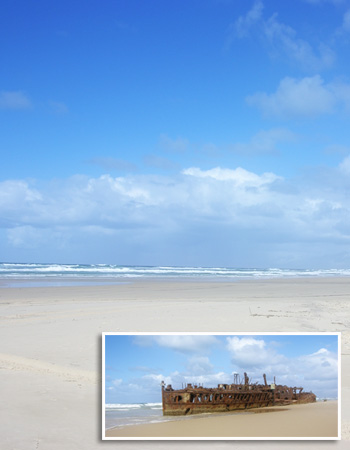Besuch bei den Wracks der Maheno, den bunten Sandsteinklippen der Cathedrals und am weißen Sandstrand des Lake McKenzie. |