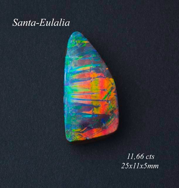 Der Stein wurde durch seine wunderhafte Heilkraft in den noblen Kreisen der ganzen Welt bekannt. Die Geschichte stammt aus dem 18. Jahrhundert und begab sich auf der Insel Ibiza, wo ein kleiner Opal die Augen eines fast blinden Jungens gerettet hat. Seit dieser Zeit trägt der Stein den Namen Santa-Eulalia als Symbol für den wunderschönen feurigen roten Strand in Ibiza.